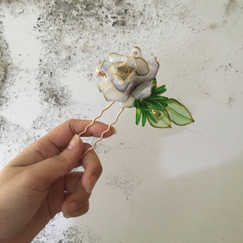 拈花曲 蓅雲 白色琉璃花小花簪 花釵 漢服配飾 琉璃髮飾 古風髮飾 傳統髮飾 蝦皮購物